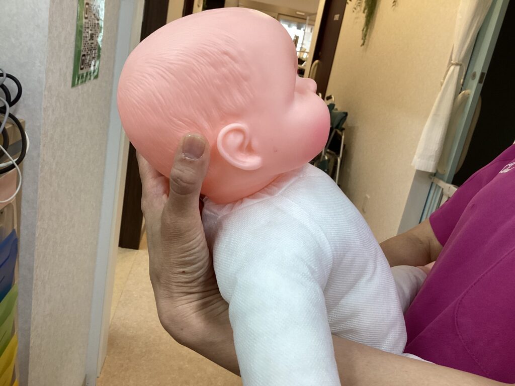 3.赤ちゃんの顔が上を向くようにし、呼吸がしやすい姿勢にする